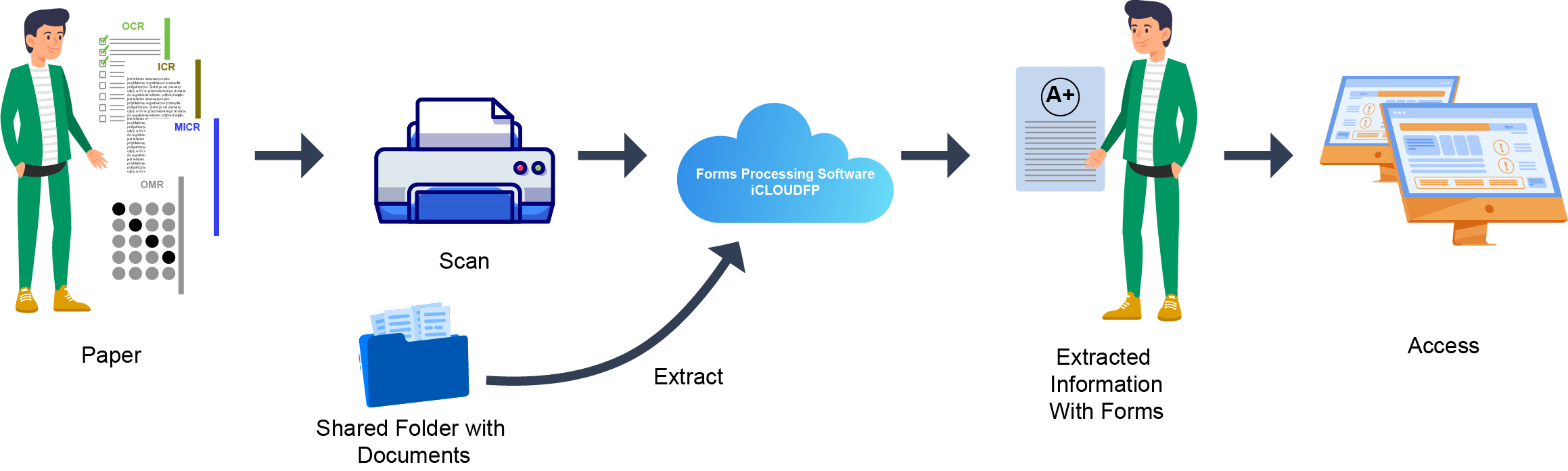 Forms Processor is a powerful zonal forms processing application that uses Barcode recognition, OCR and OMR (Optical Mark Recognition) to decipher the data on a scanned page. This application includes powerful form recognition and color drop out technology, extensive image clean up options and field based processing.